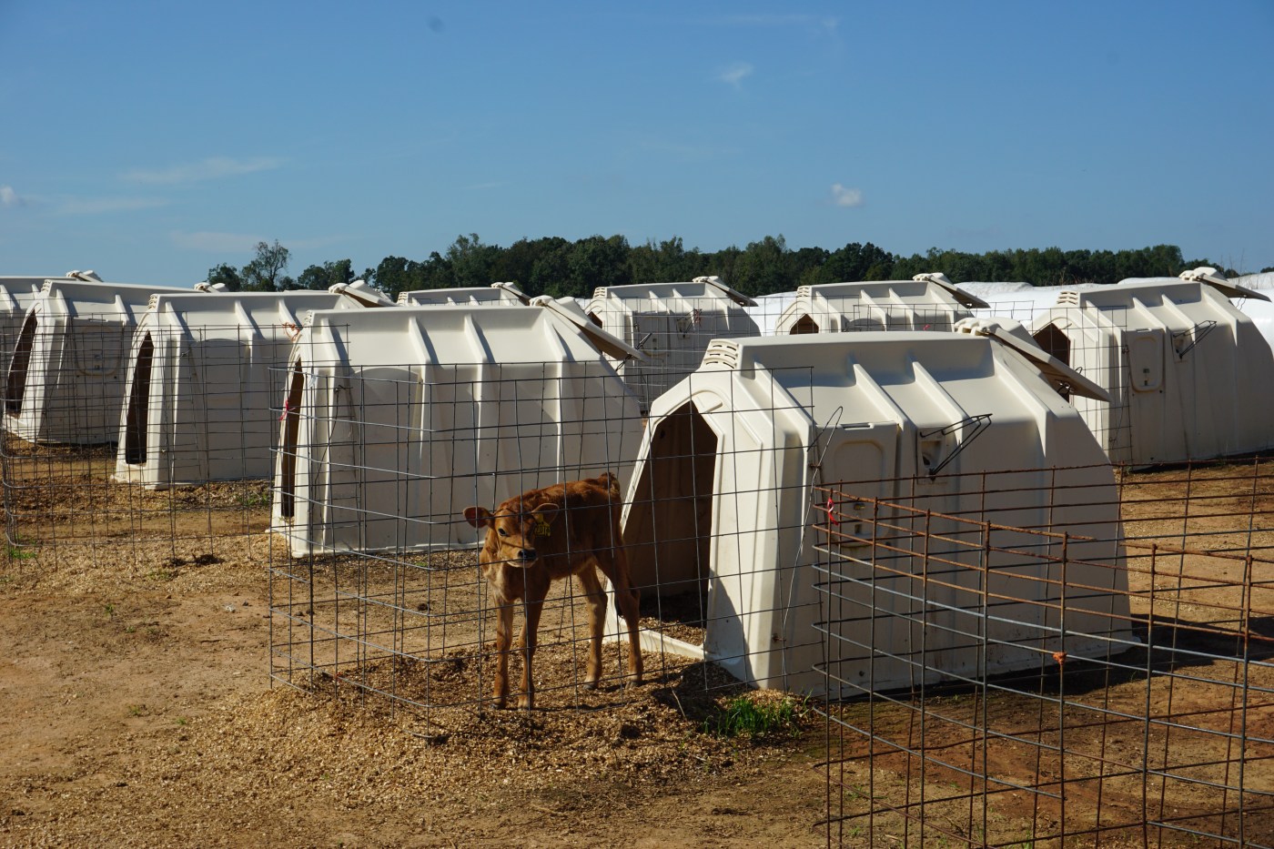 Homeland Creamery is a family-owned dairy farm in Julian, North Carolina. During their public tour they show guests one display calf in a tidy, comparatively larger-sized hutch as an example of how calves live. But this is not the reality of how most of their calves are housed.
